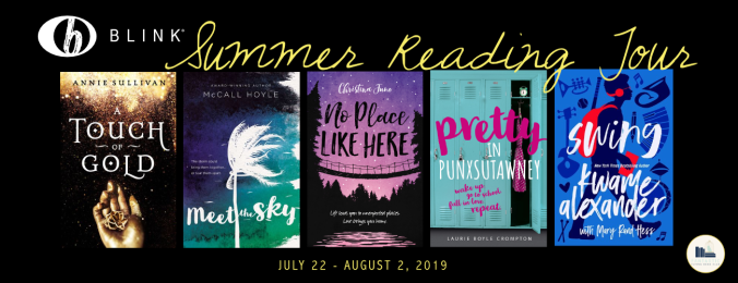 Prize: Win 1 of 5 BLINK Summer Reading Tour Book Bundles (A Touch of Gold, Meet the Sky, No Place Like Here, Pretty In Punxsutawney, and Swing by Kwame Alexander).